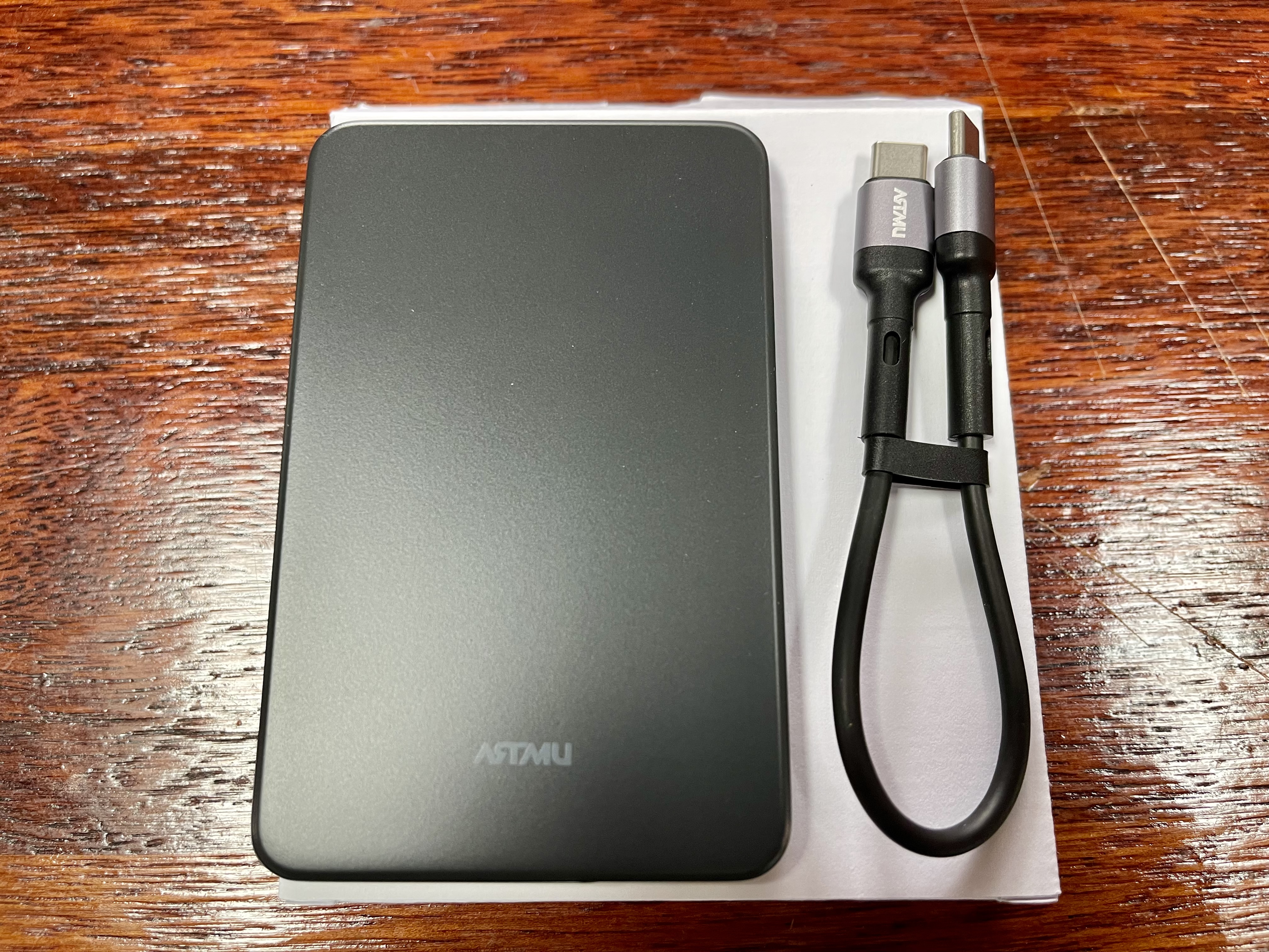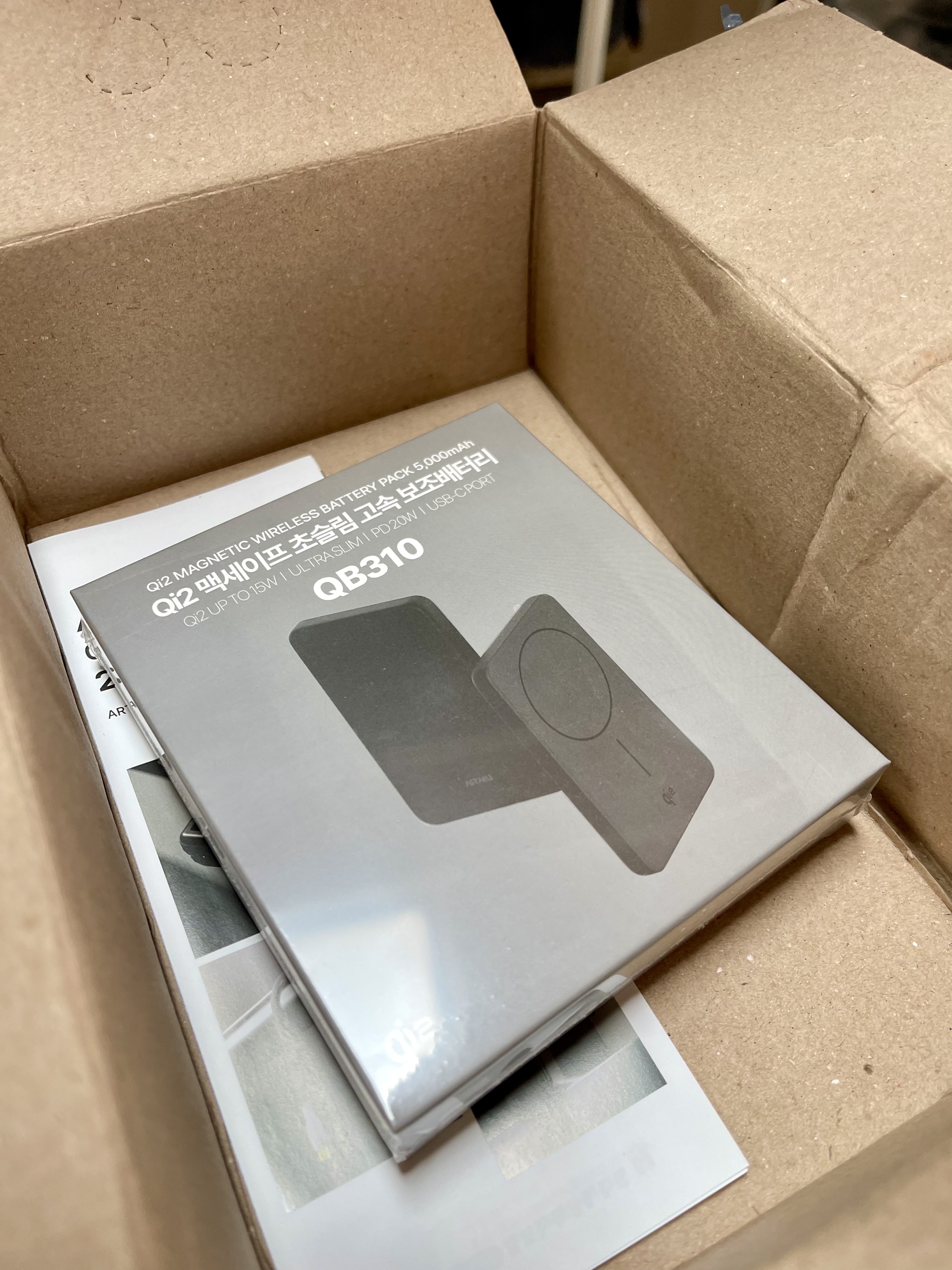 수많은 제품 중, 야외 활동이 많지 않아 휴대하기 편리한 5000mAh 용량의 제품으로 선택의 폭을 좁혔습니다. 그렇게 최종적으로 선택한 제품은 바로 아트뮤 Qi2 맥세이프 초슬림 고속 보조배터리 B310 (블랙) 모델입니다.