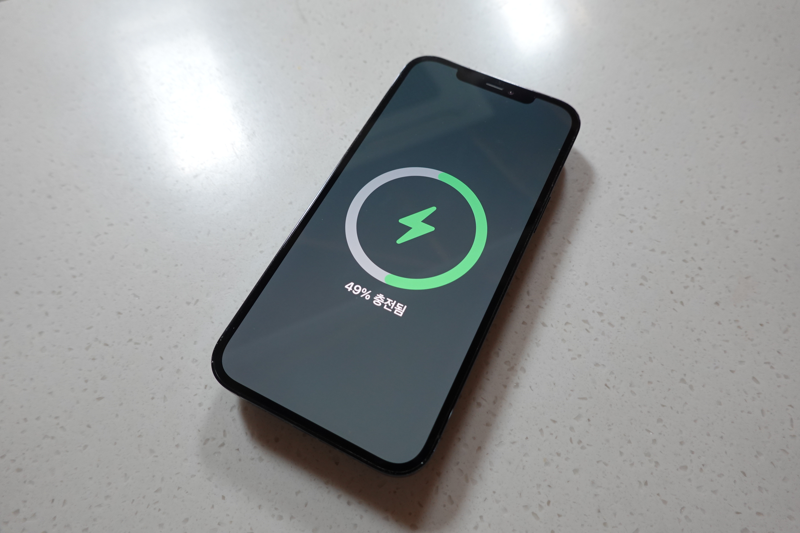 완전 충전 후 아이폰에 부착하니 충전 애니메이션이 뜨며 잘 충전되었습니다.