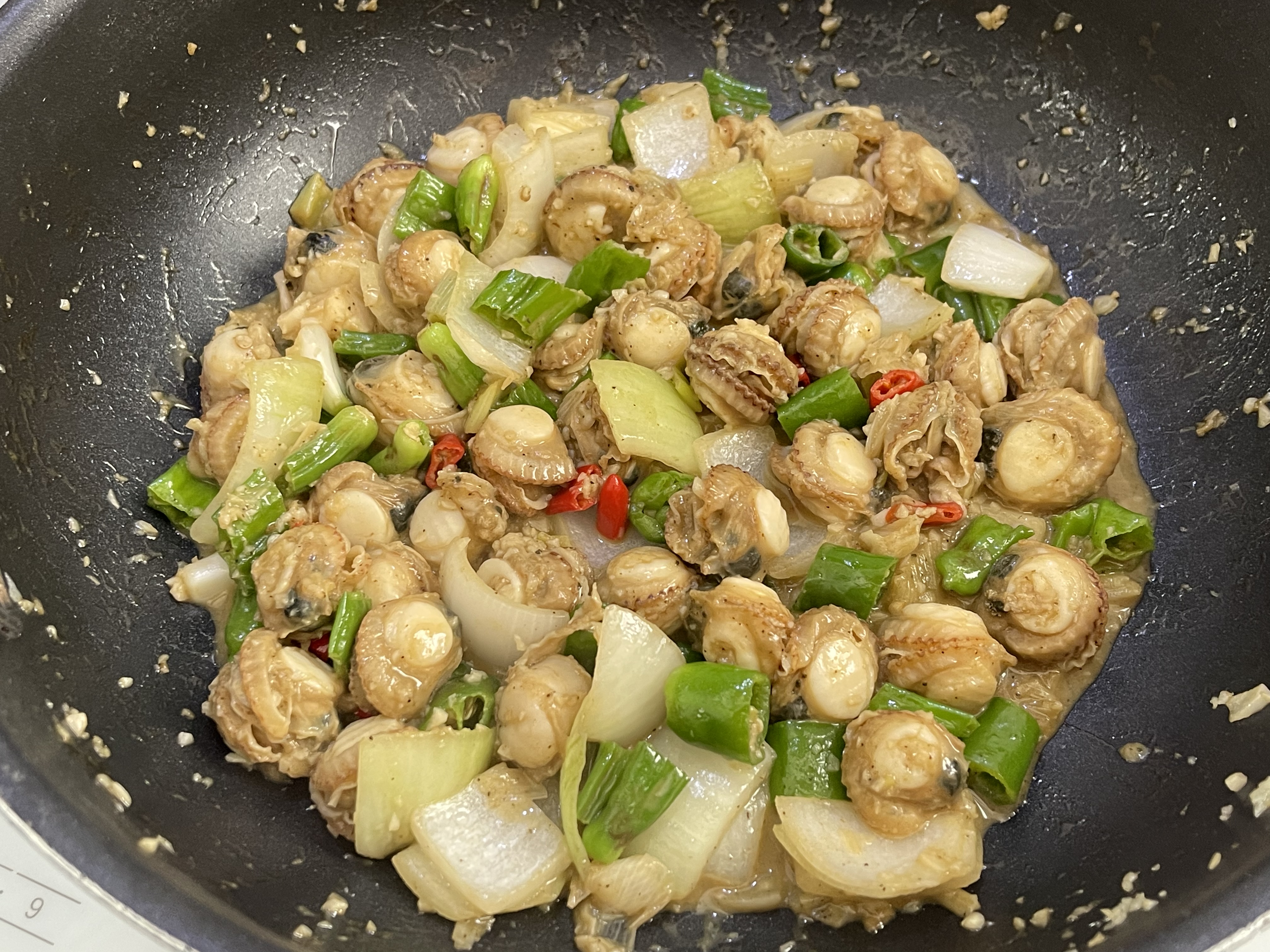 이제 이 탱글한 가리비살을 더욱 맛있게 만들어 줄 볶음 과정을 시작합니다.