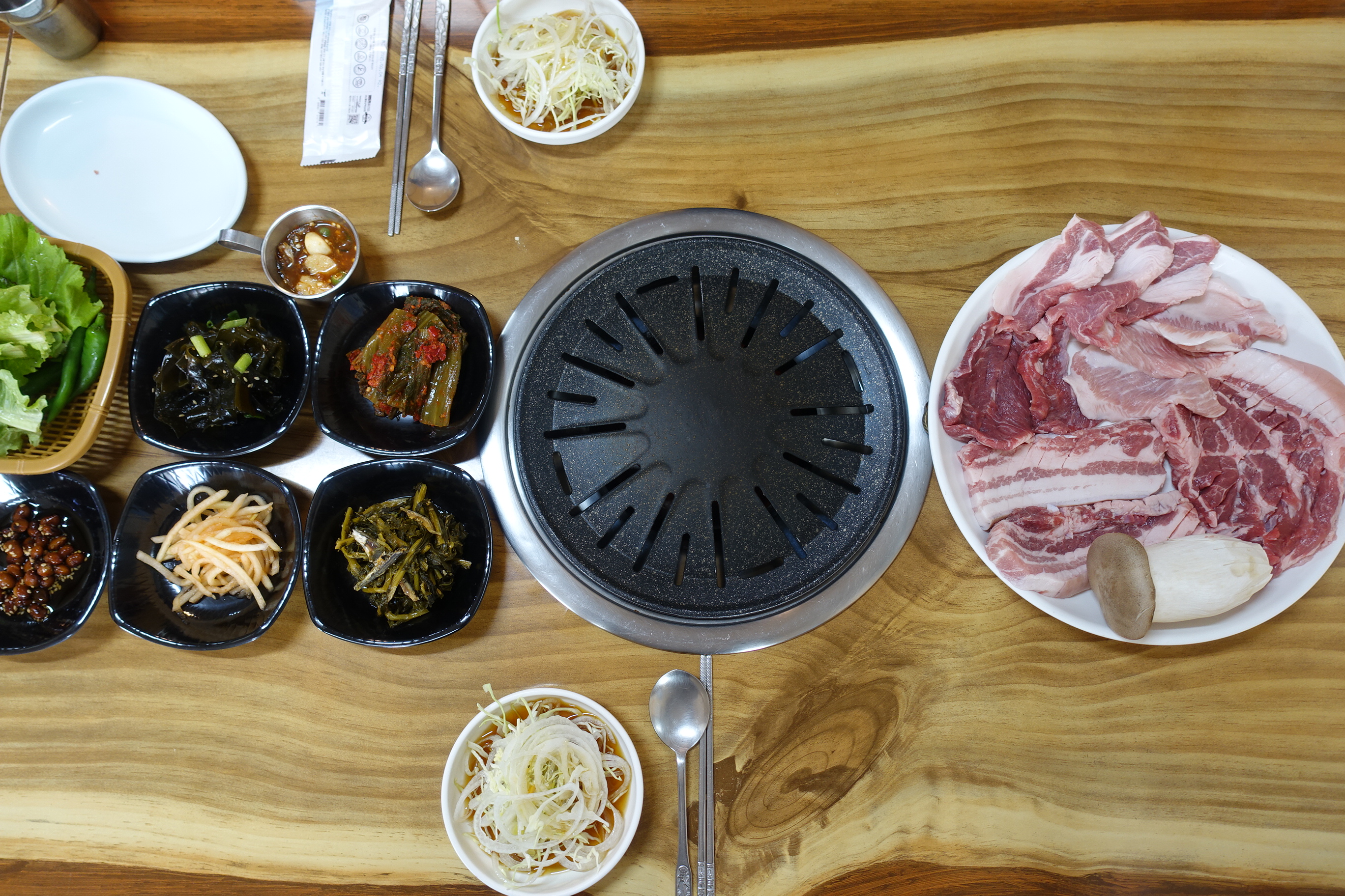 - 메뉴 구성: 흑돼지 목살, 오겹살, 항정살, 갈매기살, 가브리살 5가지 특수 부위 총 900g + 된장찌개