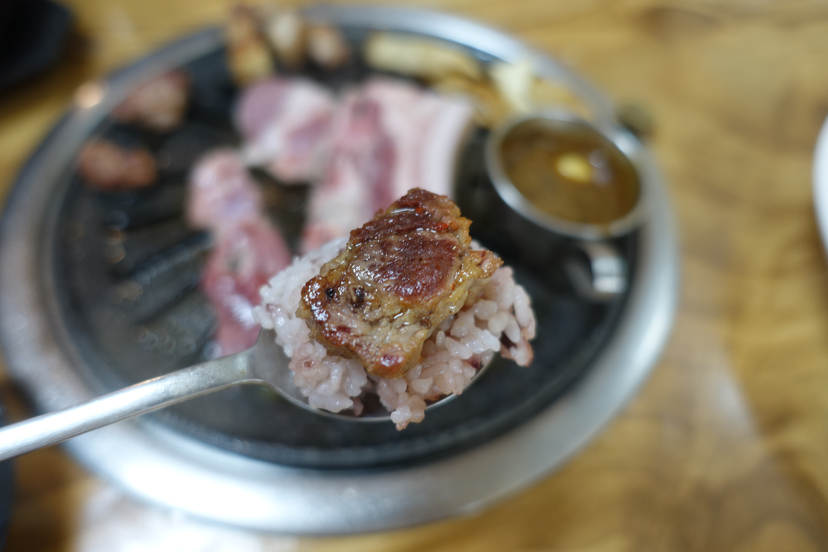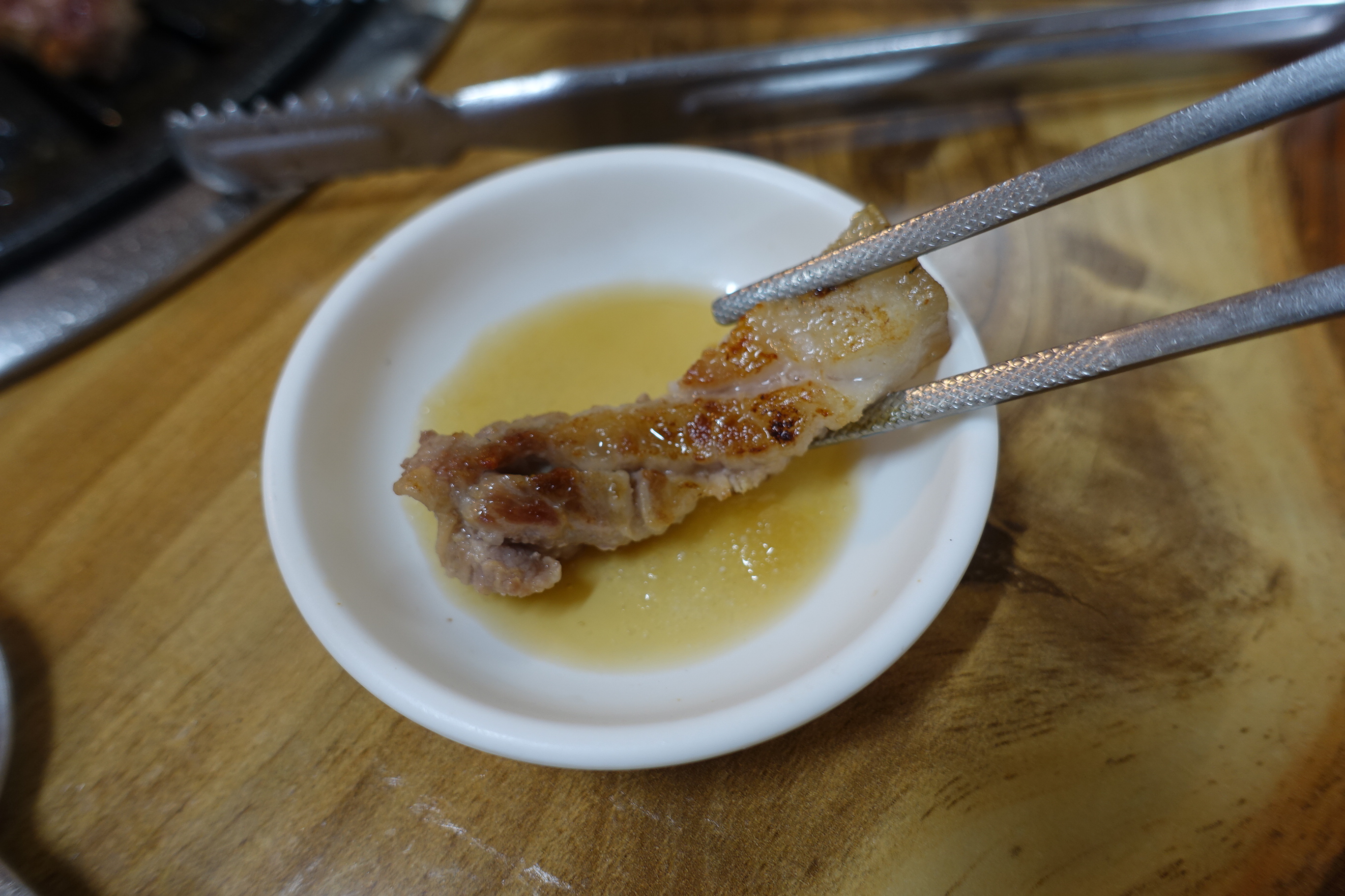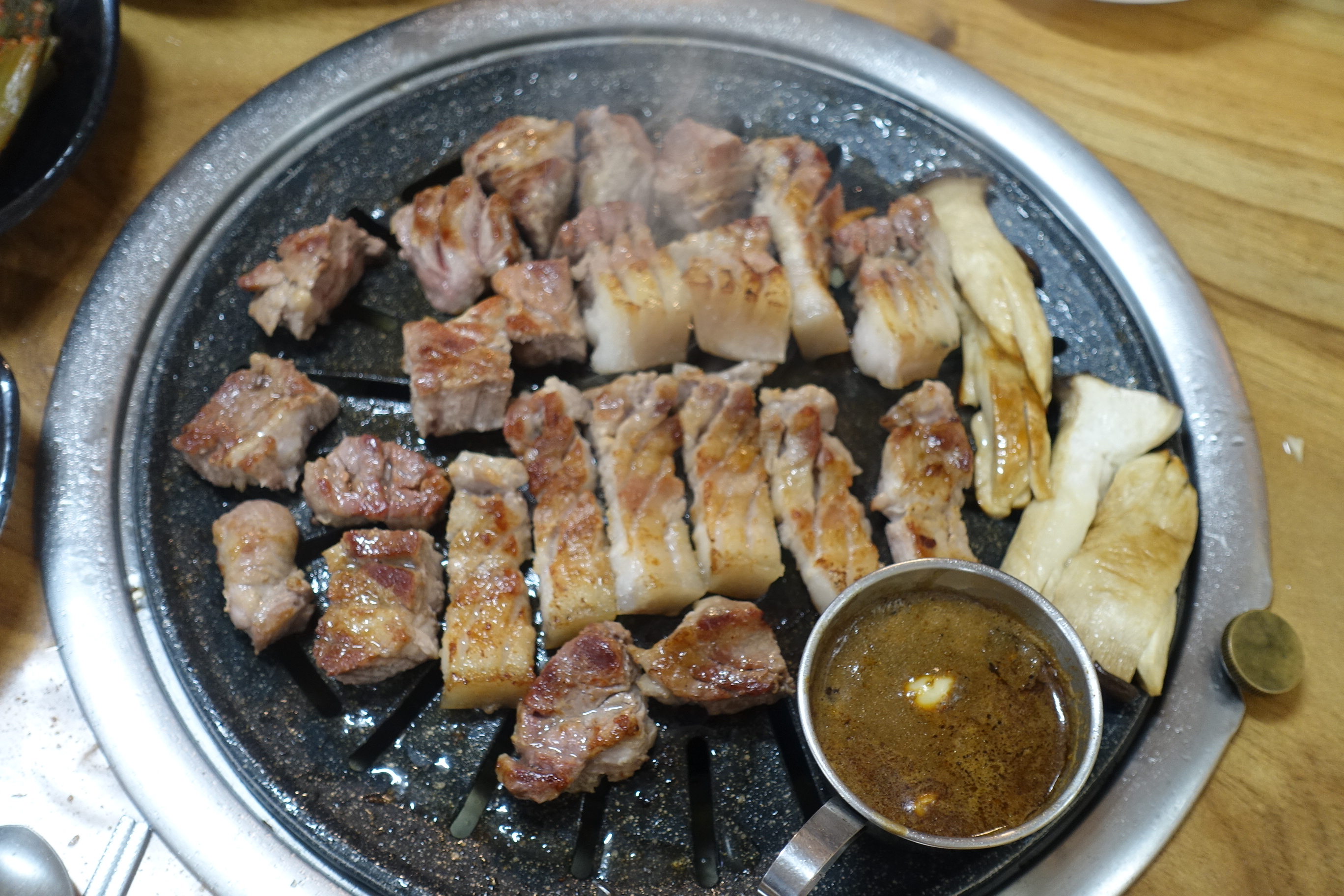 - 놀라운 육즙: 불판 위에서 적절하게 구워진 고기는 씹을 때마다 터져 나오는 육즙이 압권입니다. 고기 본연의 맛이 뛰어나서 다른 양념 없이 소금에만 찍어 먹어도 최고였습니다.