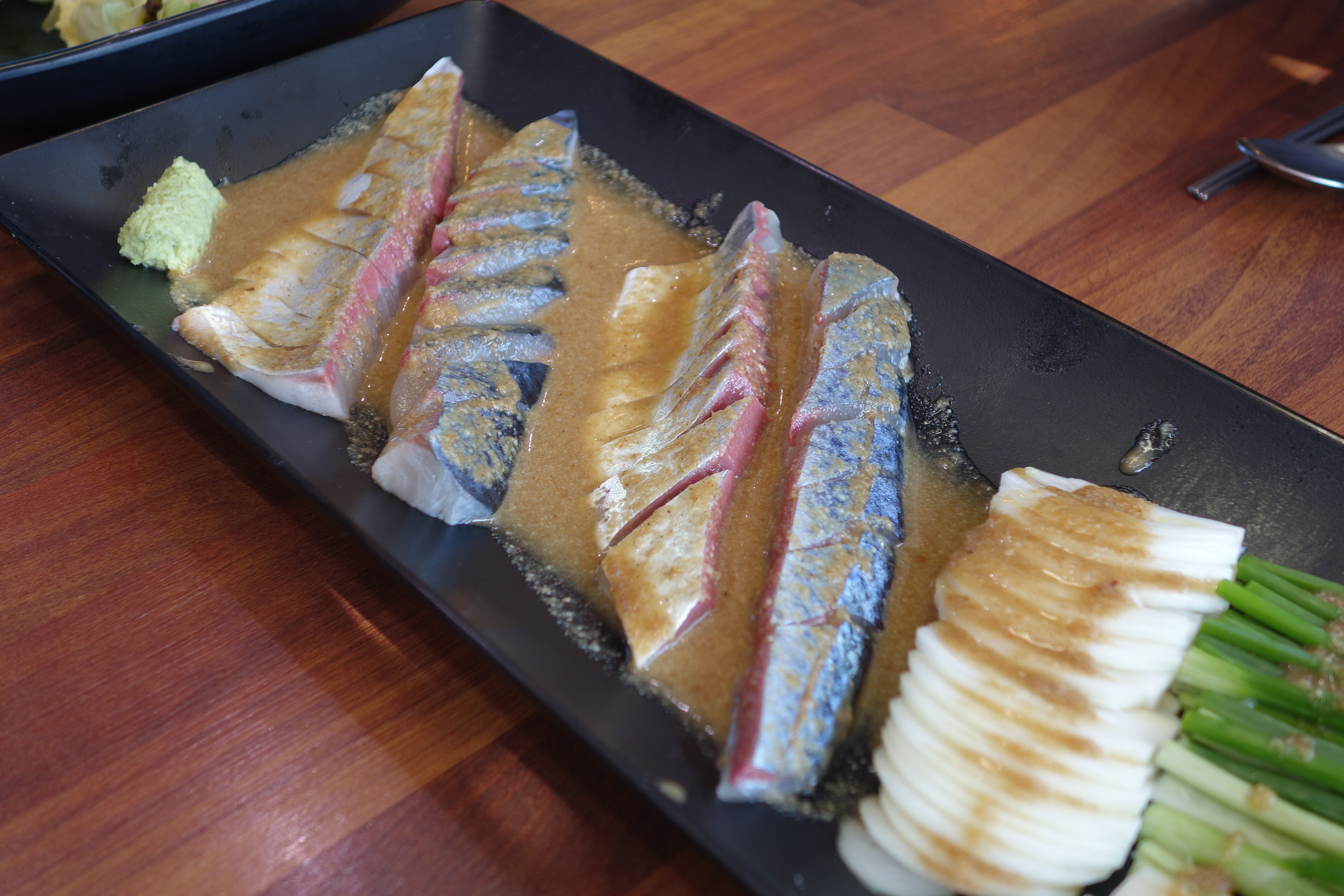해선락와사비의 '고마사바'는 싱싱하게 잘 숙성된 제주 고등어를 사용해, 사장님만의 특별한 참깨소스와 함께 제공됩니다.